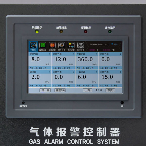 氣體報警控制器連接氣體探測器可持續(xù)監(jiān)測環(huán)境中的有毒有害氣體,根據(jù)接收到的輸入信號顯示被測氣體的濃度,并可通過Rs485數(shù)字信號與上位機通訊??刂破骺稍O(shè)定二級報警值,當監(jiān)測到被測氣體濃度超標時根據(jù)不同的報警級別發(fā)出聲光信號示警。數(shù)據(jù)記錄、報警記錄、系統(tǒng)日志以及報警通道均可通過菜單查詢,并可通過繼電器輸出來控制外部設(shè)備,如排風(fēng)系統(tǒng)或其它外部設(shè)備。